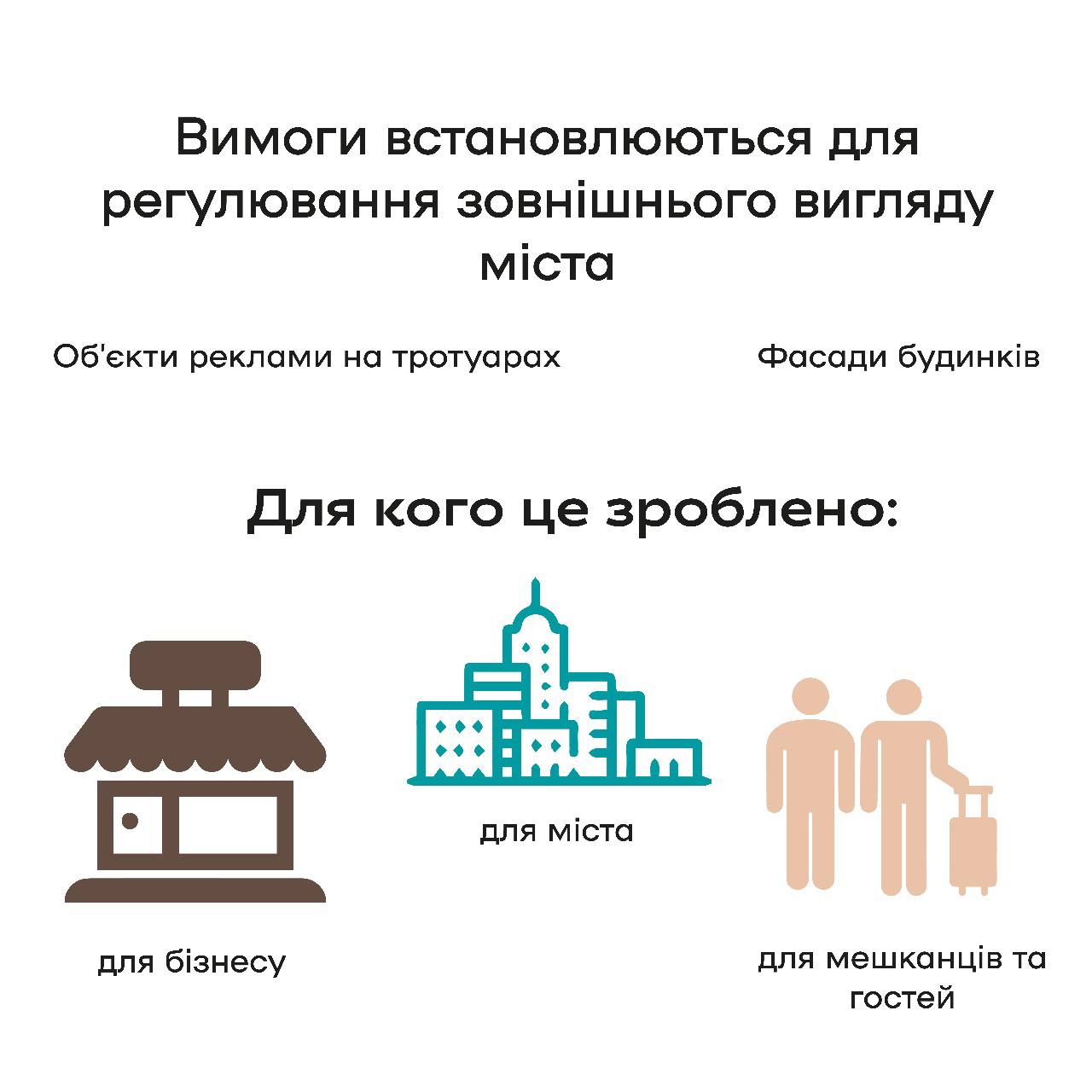 - для бізнесу - це врегулювання відносин у сфері розміщення зовнішньої реклами, встановлення чіткої процедури щодо розміщення вивісок, можливість бути поміченим серед потенційних покупців.