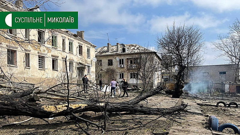 Наслідки обстрілу житлових кварталів у Миколаєві, 16 квітня. Фото: Суспільне Миколаїв.