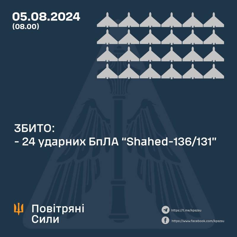 09:02 Силы ПВО ночью сбили 24 из 24 дронов "Шахед", - Воздушные силы