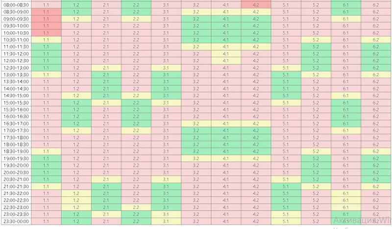 Підчерга 4.1 — з 03:00 до 09:00, з 11:00 до 17:00 та з 19:00 до 00:00