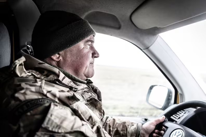 Підполковник Володимир Сулиця у мікроавтобусі VW T5 на шляху до Шевченківського. Фото: Енді Спіра