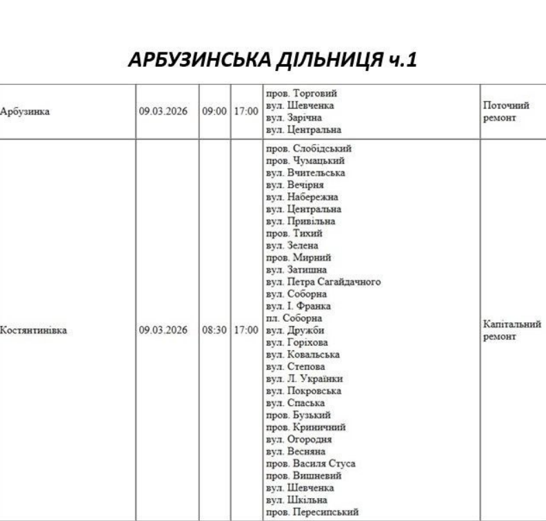 Внимание! Графики плановых отключений света из-за ремонтных работ Николаевской области 9 марта. Адреса