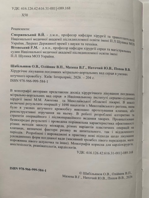 В частности, больные были прооперированы по поводу сочетанных митрально аортальных пороков сердца в Институте Амосова и в Николаевской областной клинической больнице за период 2006-2025 гг.