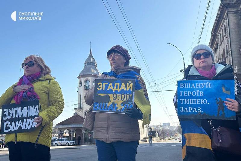 Николаев, 15 марта — Сегодня в 09:00 в центре Николаева прошла традиционная акция памяти. Жители города собрались, чтобы почтить минутой молчания украинских защитников и мирных граждан, погибших в результате российской агрессии.