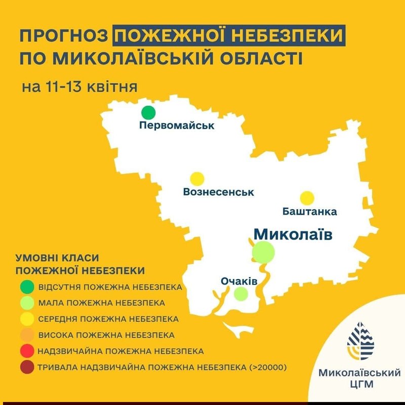 Несмотря на дневное потепление, уровень пожарной опасности в регионе остается низким. Показатели колеблются от I до III класса в зависимости от района (в частности, в Николаеве — II класс). Благодаря таким погодным условиям вероятность масштабных пожаров в экосистемах минимальна, однако жителей традиционно призывают быть осторожными с открытым огнем.