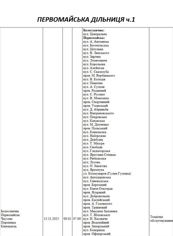 1.1 – 09:00 - 12:30; 16:00 - 19:30; 23:00 - 00:00 (Всего 8,5 часов без света).