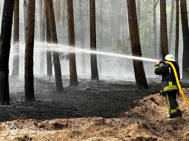 Через обстріл також виникла пожежа в лісовому масиві на території Богодухівського району, загорілася хвойна підстилка на площі близько двох гектарів.