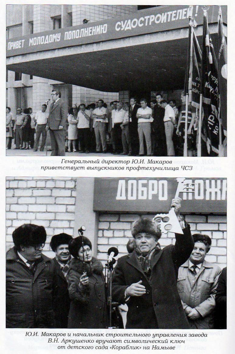 Спуск кожного корабля люди сприймали з величезною радістю, тому що це - результат надзвичайно важкої праці тисяч працівників заводу і часточка душі нашого українського народу, який звик долати труднощі як в мирний, так і в воєнний час. Під керівництвом Ю. І. Макарова було побудовано більше 500 різноманітних цивільних, науково-дослідних суден та військових кораблів, перший військовий корабель незалежної України «Славутич».