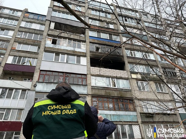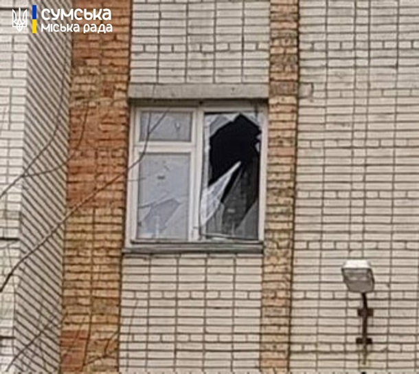 У Сумській міськраді повідомили, що внаслідок ворожої атаки пошкоджено стоянку, де розташоване СТО, автомобілі та вікна житлових будинків.