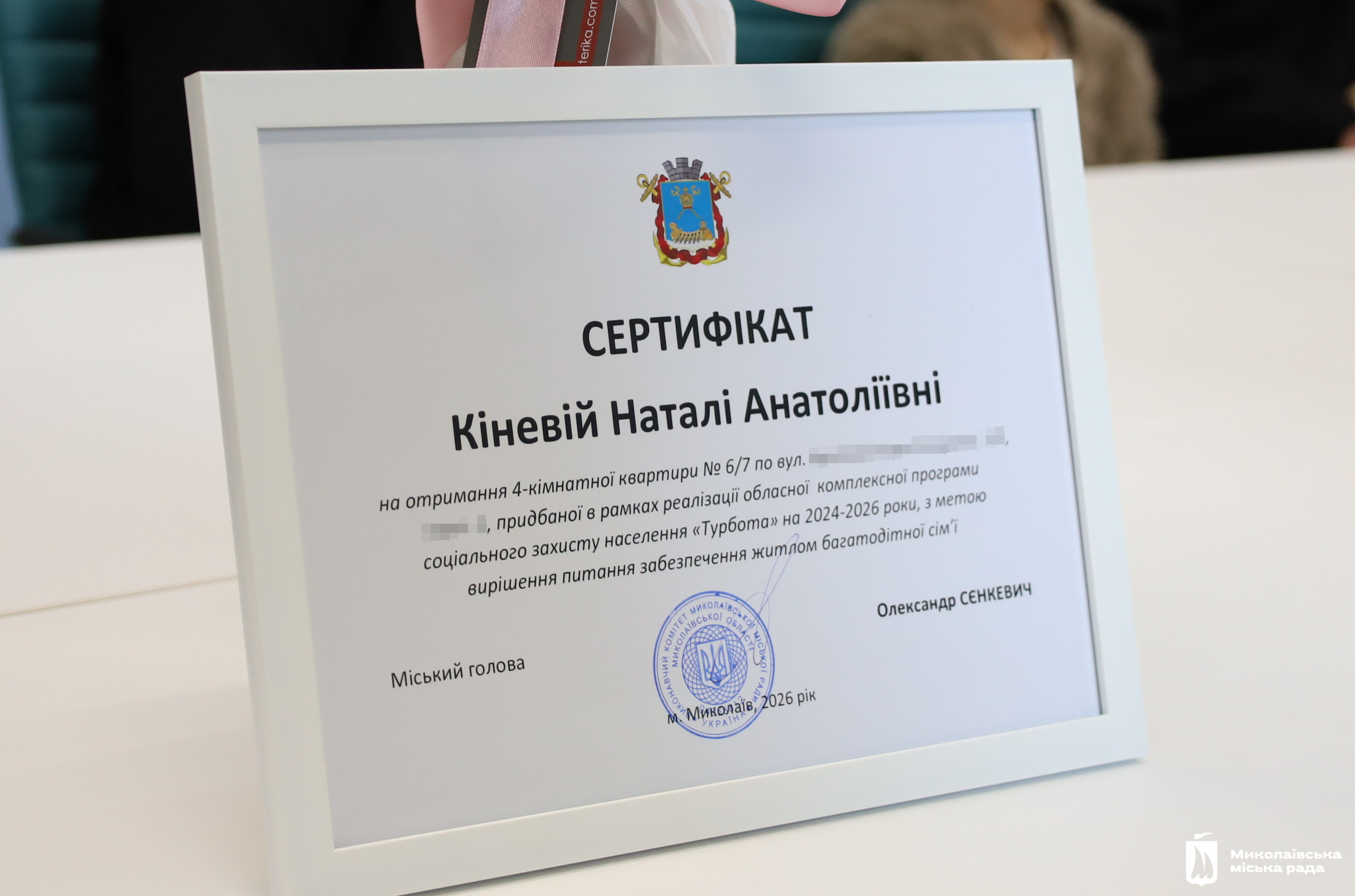 Сьогодні, 16 січня, багатодітна родина з Миколаєва отримала власне житло за програмою «Турбота». Це обласна програма, яка реалізується у співфінансуванні з містом.