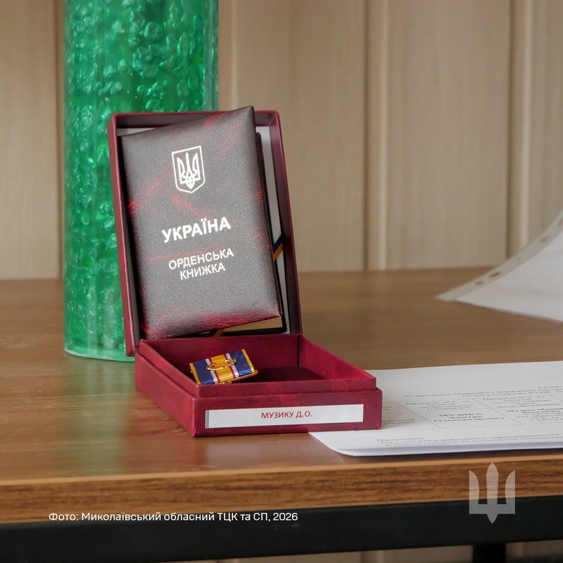 Цього дня орден «За мужність» II ступеня представник Інгульського районного територіального центру комплектування та соціальної підтримки капітан Андрій Онищенко вручив дружині Захисника — Марині Музиці.