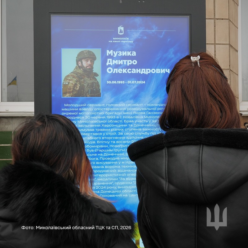 Днями в приміщенні районної адміністрації міста Миколаєва відбулося вшанування пам’яті полеглого Захисника України — молодшого сержанта Дмитра Музики, командира машини взводу спостереження розвідувальної роти 59 окремої мотопіхотної бригади.