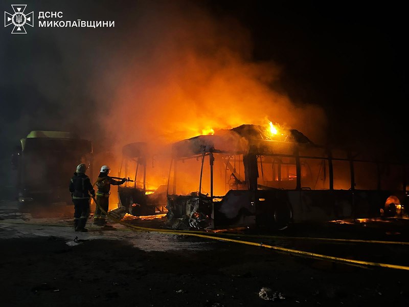 Вогняна доба на Миколаївщині: у Вознесенську згоріли чотири автобуси, а дим від масштабних пожеж очерету накрив Миколаїв