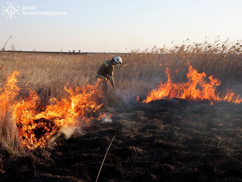 Ще 2,9 га очерету згоріло біля с. Новопетрівське, а в Корабельному районі Миколаєва гасили суху траву та сміття.