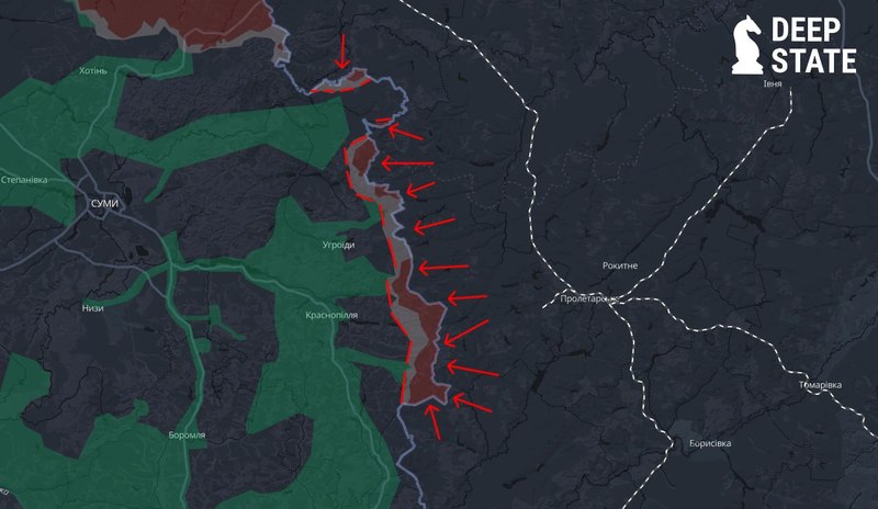 00:46 DeepState повідомляє про створення окупантами «буферної зони» на Сумщині