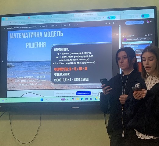 Для аналізу найбільш проблемної зони - берега ріки, юні дослідниці розробили математичну модель, провели розрахунки. Було проаналізовано історію Намиву, досліджено процеси руйнування берегів, виконано математичні розрахунки. Така робота дозволила розрахувати кількість дерев, необхідних для захисту берега, запропонувати інші рішення.
