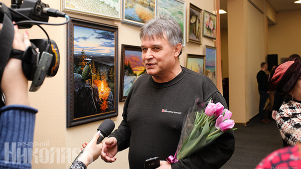 На коллективном вернисаже студии Валентина Меркулова было людно, как на любой корпоративной выставке. Пришли сами авторы (20 человек), плюс родственники и знакомые авторов, плюс руководство Николаевского областного Института последипломного педагогического образования (ОИППО), плюс чиновники от культуры, плюс любители живописи и профессиональные художники.
