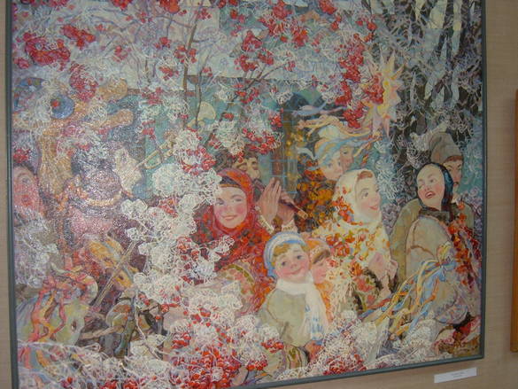 - К рождественской теме вы обращались в работах «Різдвяні верби» и «Різдвяна казка». В «Колядках» – к народной традиции «Рождество колядой прославлять». Картина отмечена в профессиональном сообществе, уже не раз побывала на выставках, и зрителей всегда притягивают звучность цвета, звенящий морозный воздух и веселые колядники. Расскажите о них.