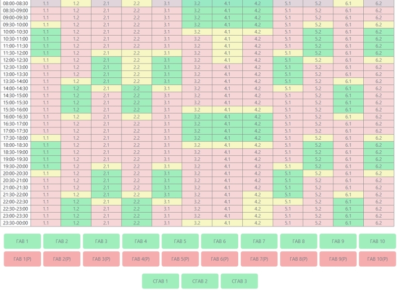 4.2 – 02:00 – 08:00; 10:00 – 16:00; 18:00 – 22:00;