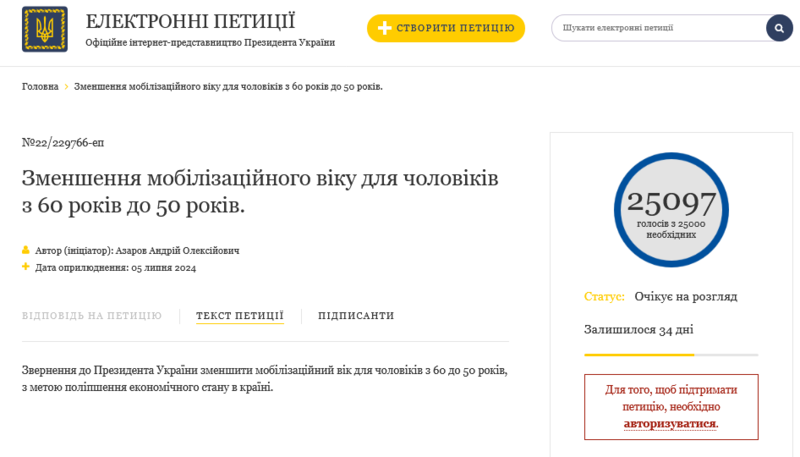 19:09 Зеленського просять зменшити мобілізаційний вік до 50 років