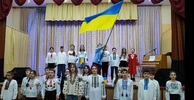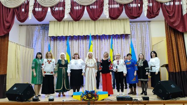 У Миколаївській гімназії у День Соборності України на сцену вийшли вчителі і учні