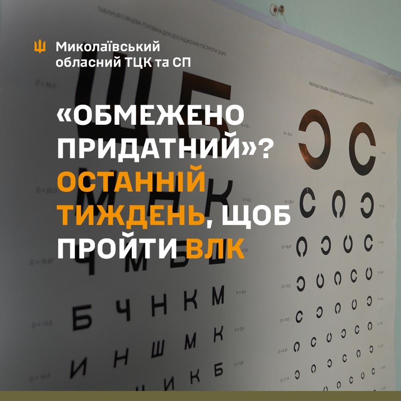 Лишився лише один тиждень для проходження повторної військово-лікарської комісії (ВЛК) громадянами України віком від 25 до 60 років, які мають статус «обмежено придатний».