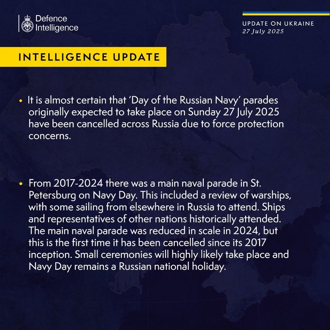 20:48 Британська розвідка: Росія вперше повністю скасує парад до Дня ВМФ по всій країні