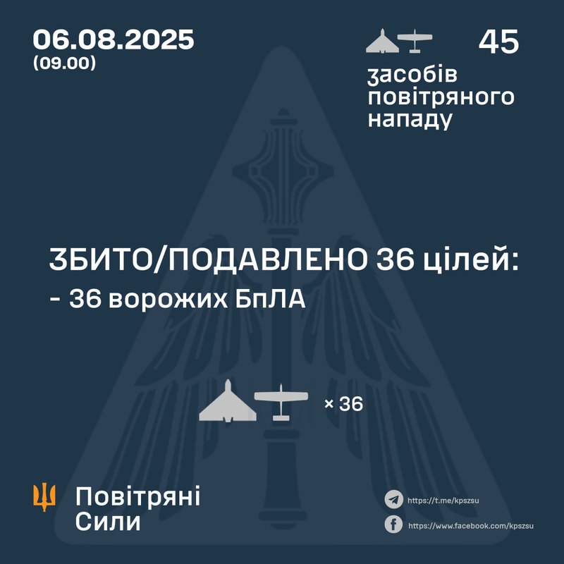10:10 Нічна атака дронів: Сили ППО України збили 36 ворожих безпілотників із 45 запущених