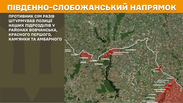 На Південно-Слобожанському напрямку противник сім разів штурмував позиції наших підрозділів у районах Вовчанська, Красного Першого, Кам’янки та Амбарного.