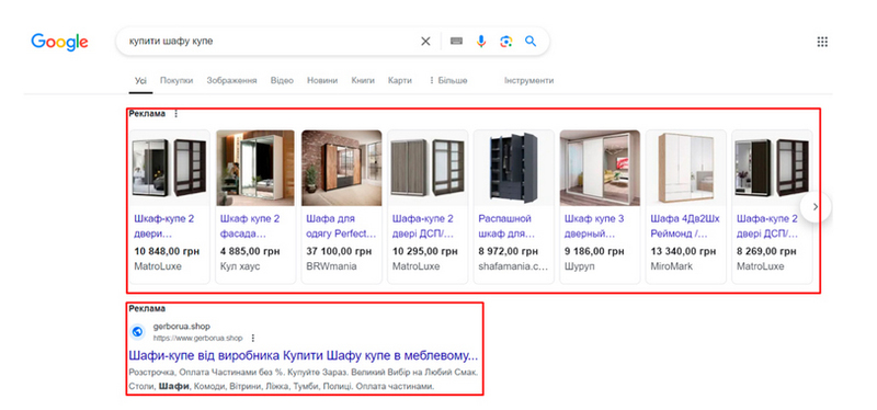 Контекстна реклама — незамінний інструмент для меблевої сфери. Крім стандартних медійних або пошукових кампаній обов’язково варто налаштовувати ремаркетинг, аби нагадувати користувачам про товари, які вони переглядали.