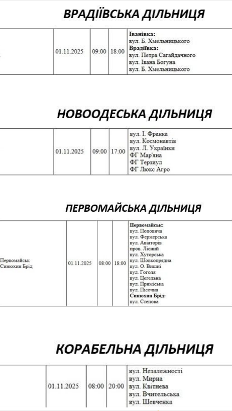 Споживачам рекомендують заздалегідь ознайомитися з графіком та підготуватися до можливих незручностей.