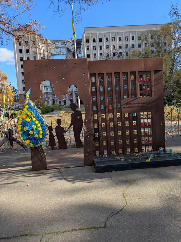 Навіть у розбомблених будівлях міста вирує творча енергія. Забужко розповіла, що відвідала міський театр (колишній театр "руської драми"), де сцена працює в укритті, а глядачі заповнюють зал, сидячи на приставних стільцях. Миколаївці по-хазяйському хваляться своїм "було – стало", активно займаючись "меморіалізацією біжучих подій". Вони позначають місця "прильотів" табличками з QR-кодами, залишають фрагменти ракет, що застрягли у деревах . На центральній площі, на тлі розбомбленої будівлі обладміністрації, навіть з'явився "народний пам’ятник", автор якого невідомий — його просто вилили на одному з місцевих заводів. Пам'ятник вийшов універсальним, "про всіх", і ідеально "ліг" на місцевість.
