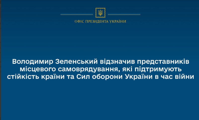 Згідно з Указом Президента України Володимира Зеленського від 7 грудня 2025 року №919/2025 «Про відзначення державними нагородами України з нагоди Дня місцевого самоврядування» державними відзнаками нагороджено представників органів місцевого самоврядування.