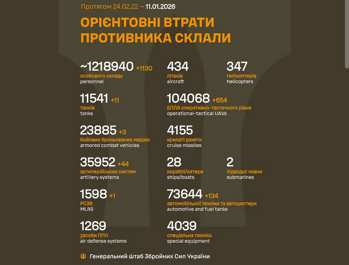 1418-й день війни. Хроніка неділі, 11 січня (оновлюється)