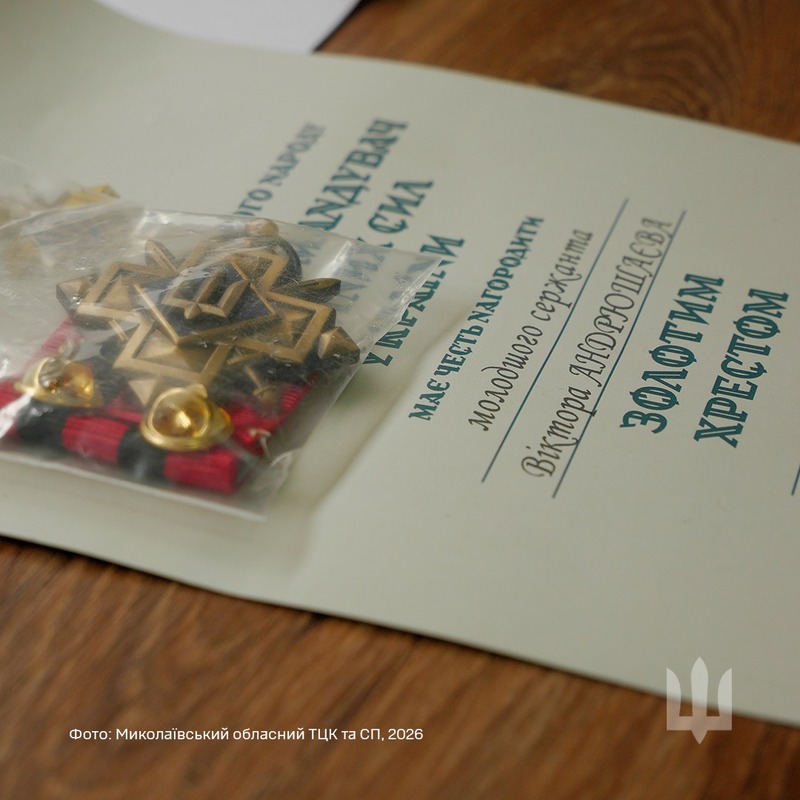 Ордени «За мужність» III ступеня, «Хрест героя» та нагрудний знак «Золотий хрест» Віктора Андрюшаєва передали дружині — Валентині.