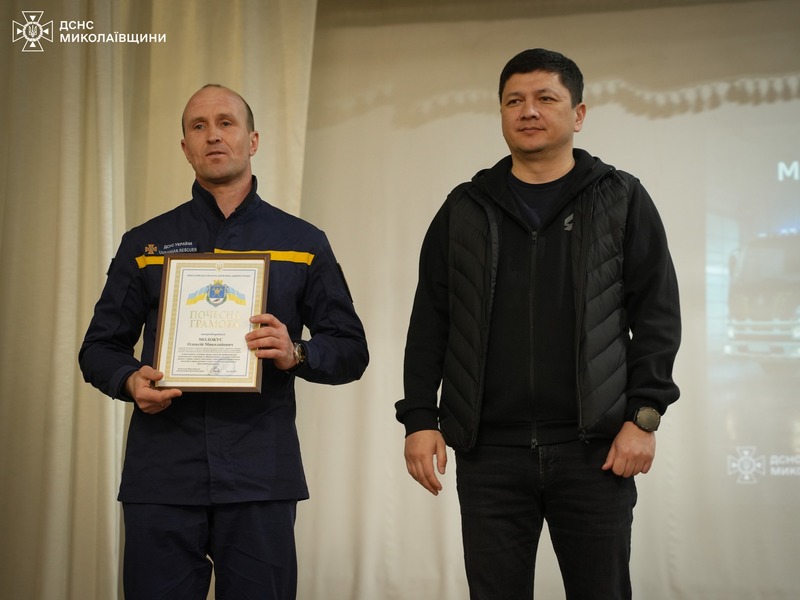 Рятувальників привітали начальник Миколаївської ОВА Віталій Кім, голова обласної ради Антон Табунщик, секретар міської ради Дмитро Фалькоа також представники правоохоронних органів і військові.