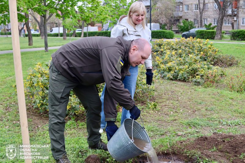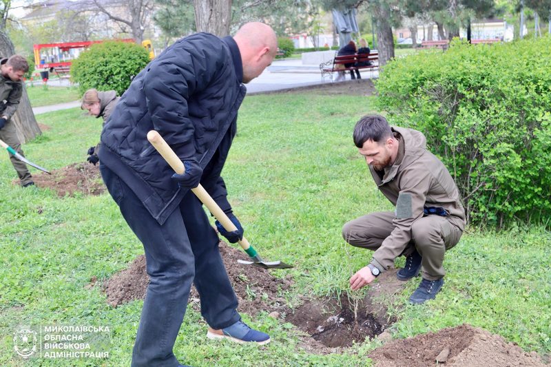 До висадки дерев долучилися перший заступник начальника Миколаївської обласної військової адміністрації Георгій Решетілов, перший заступник голови Миколаївської обласної ради Ігор Щербина, начальниця управління екології та природних ресурсів Миколаївської ОВА Олександра Єфіменко, депутатка Миколаївської обласної ради Алла Ряжських, начальник Спеціалізованої екологічної прокуратури Євген Кириленко, виконувач обов’язків першого заступника начальника Державної екологічної інспекції Андрій Кузюк, представники комунальних служб та громадськість.