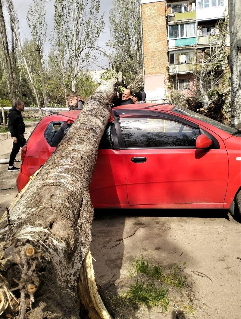 Пабліки у Телеграмі та кореспонденти Суспільного фіксують масовий деревопад по всьому місту: дерево впало на будинок на ЮТЗ, на вул. Миколаївській повалені стовбури розбили автівки та пошкодили трубу тепломережі.
